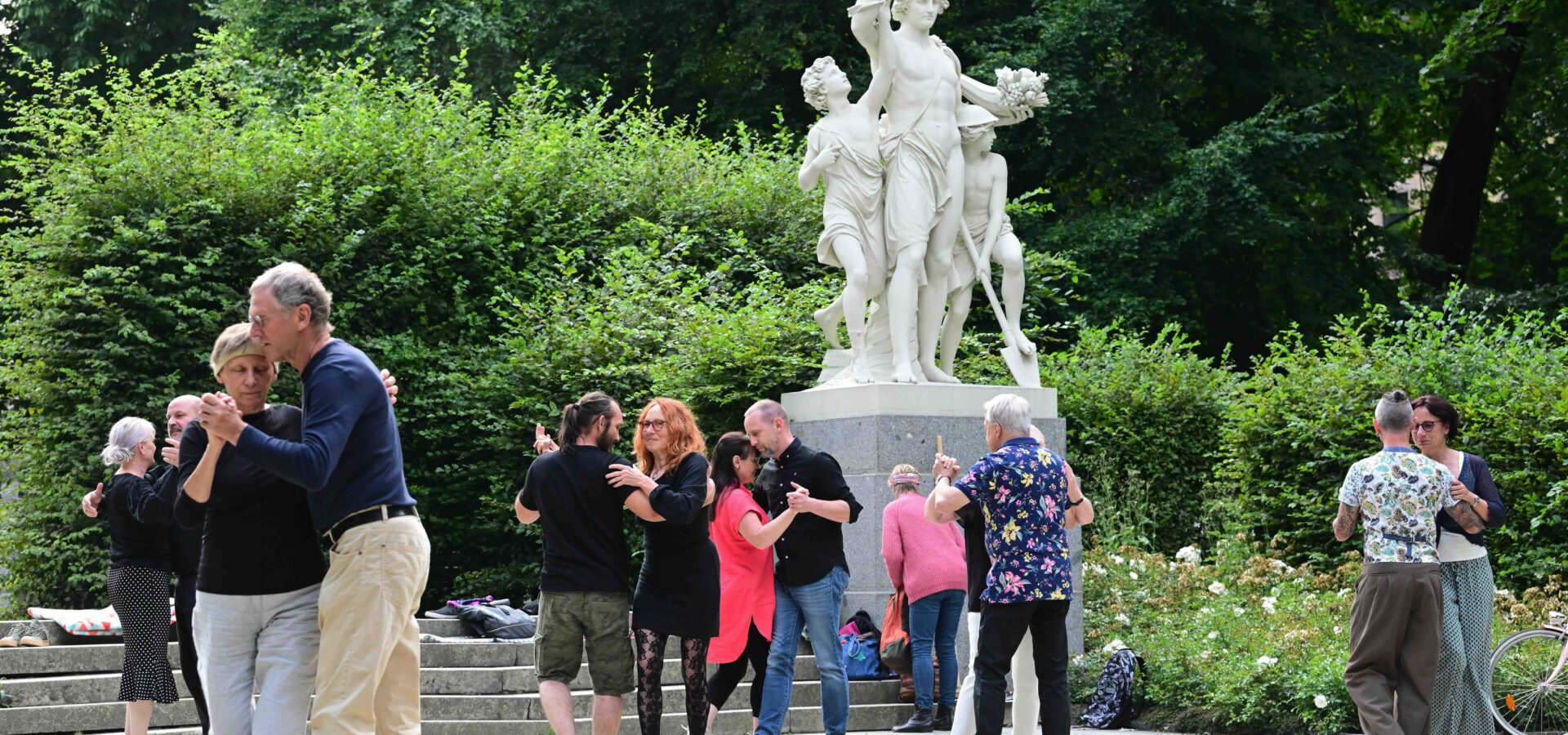 Von den warmen Abenden im lauschigen Park wollen wir uns umarmend verabschieden. Dazu laden Evi und Bernd wieder an die Schillingschen Figuren im Shloßpark Chemnitz ein.